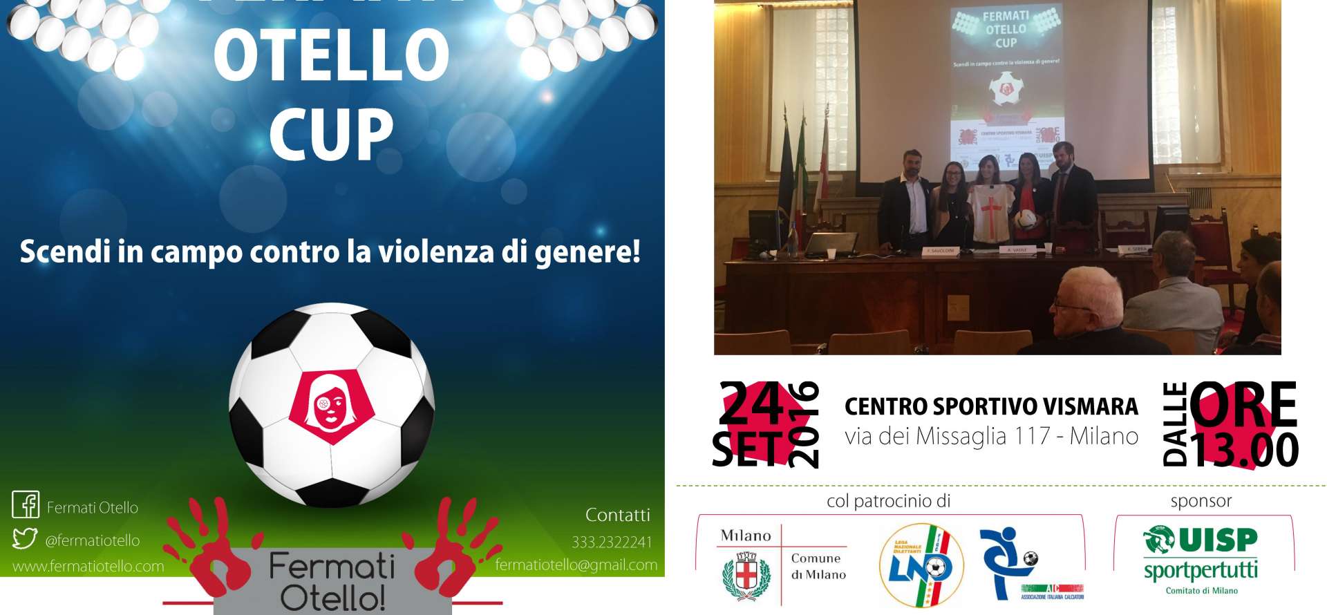 Torna per il terzo anno la “Fermati Otello Cup”, il torneo di calcio a 7 maschile e femminile contro la violenza di genere. L’iniziativa promossa dall’Associazione di volontariato Fermati Otello si terrà sabato 24 settembre a Milano, presso il Centro Sportivo Vismara. L’obiettivo della manifestazione è di sensibilizzare il maggior numero di persone contro la violenza di genere e anche quest’anno in tanti hanno aderito all’appello dell’Associazione. Sul campo si sfideranno 12 squadre in rappresentanza del mondo dell’associazionismo, delle forze dell’ordine e delle istituzioni.
